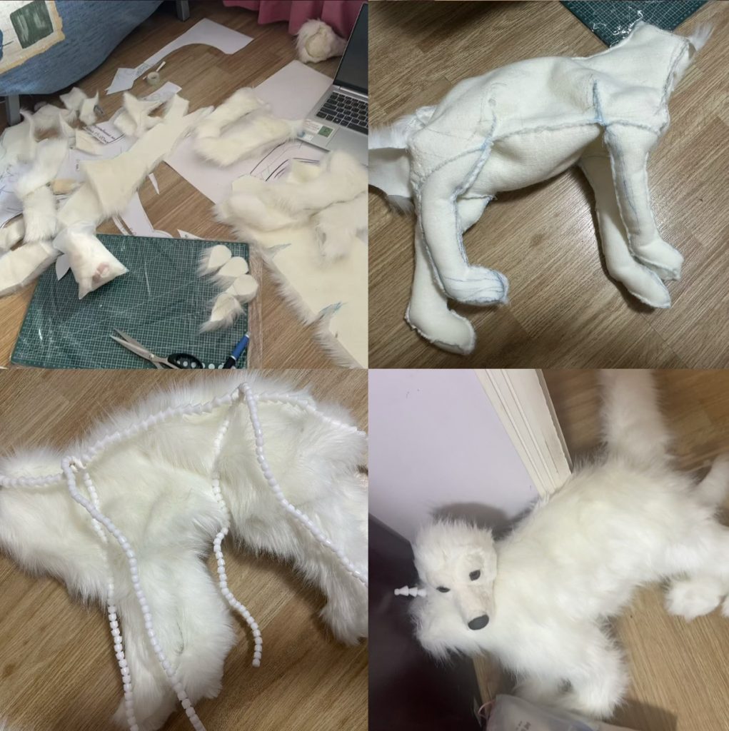 I’ve loved animals and collected many plush toys when I was a child. I always dreamed of owning a unique creature from my imagination. So when I was 16, I started self researching with wool, artificial fur, and wire skeletons, and made my own fantasy creature dolls. These works later became part of my portfolio and helped me get into UAL.
