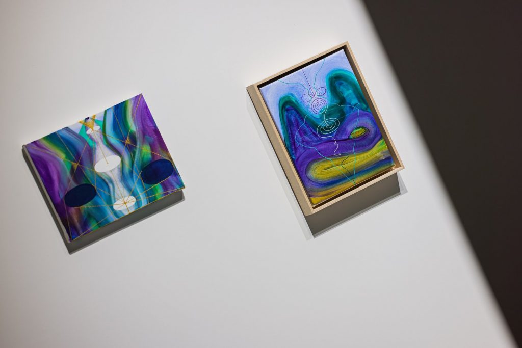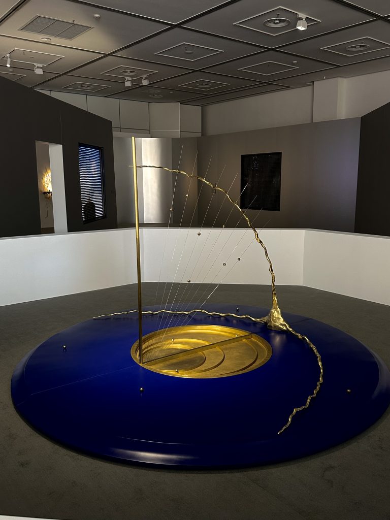 The gallery footprint was modest, but the spatial design was smart: tailored niches for works across very different media and styles, unified by a deep blue–silver palette that sustained a cosmological atmosphere.