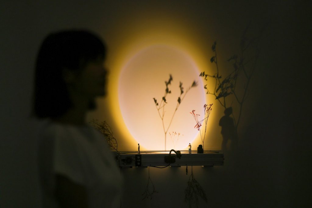 Two light-based works continue Lester’s long-term inquiry into narrative, motion, spatiotemporal perception. Figures and objects travel on a conveyor while constant light witnesses their passage. It reminded me of a famous accent Chinese poem sentence: