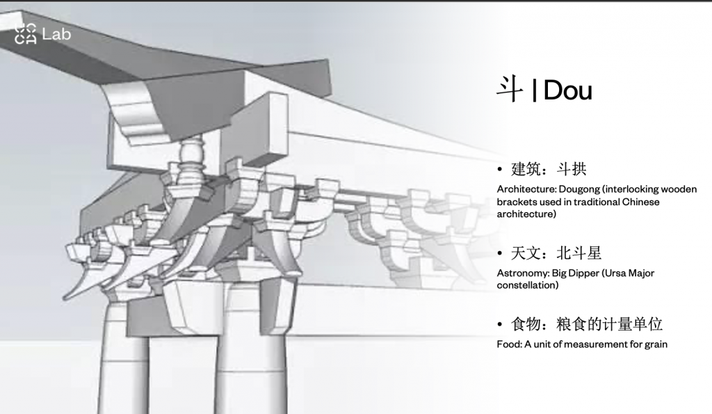 “Cosmic Alignment” grows from the Chinese character “斗 (dou)”,  bridging architecture, astronomy, and agriculture.